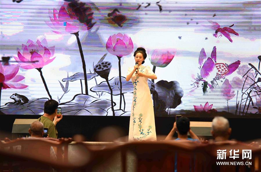 8月31日,河北省石家庄市评剧院一团演员在正定荣国府影视基地大戏院内表演。新华社记者骆学峰摄