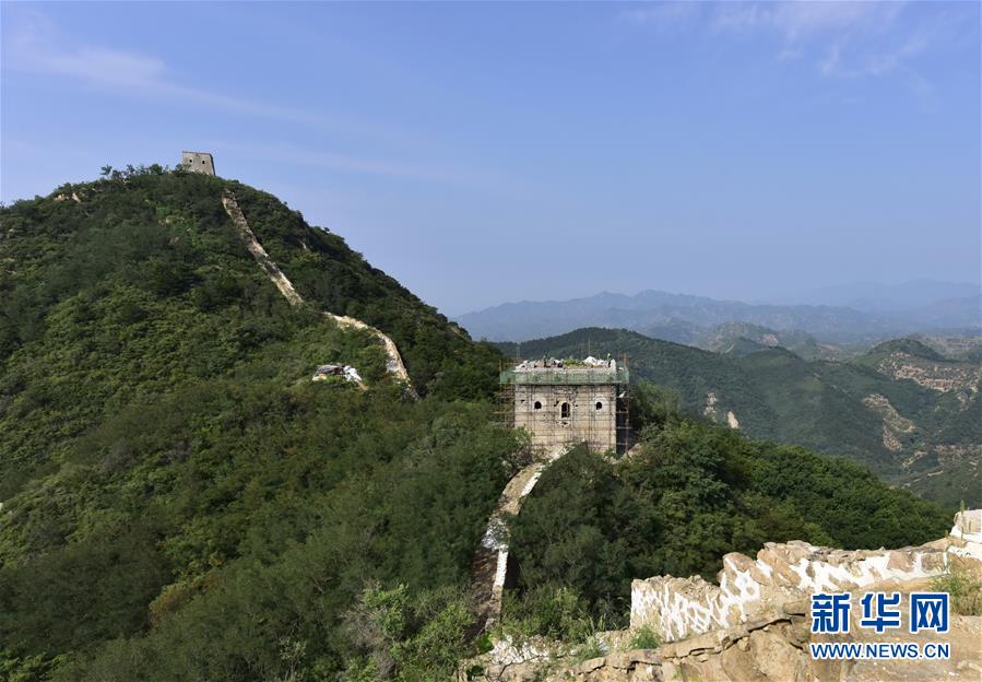 9月3日,工人在大石峪长城抢险加固保护工程工地施工。 近日,位于河北省遵化市侯家寨乡境内的大石峪长城抢险加固保护工程正在按照节点要求稳步推进。据介绍,大石峪长城抢险加固保护工程于4月23日开工,抢险加固敌楼3座、墙体3段,预计10月30日完工。 新华社记者 杨世尧 摄