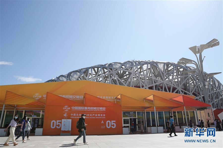 9月3日,受邀记者在位于北京奥林匹克公园中轴景观大道的服贸会专题展区探访。 2020年中国国际服务贸易交易会将于9月4日-9日在北京举行。9月3日,受邀媒体记者来到位于北京奥林匹克公园中轴景观大道的专题展区进行探访。 新华社记者 潘思危 摄