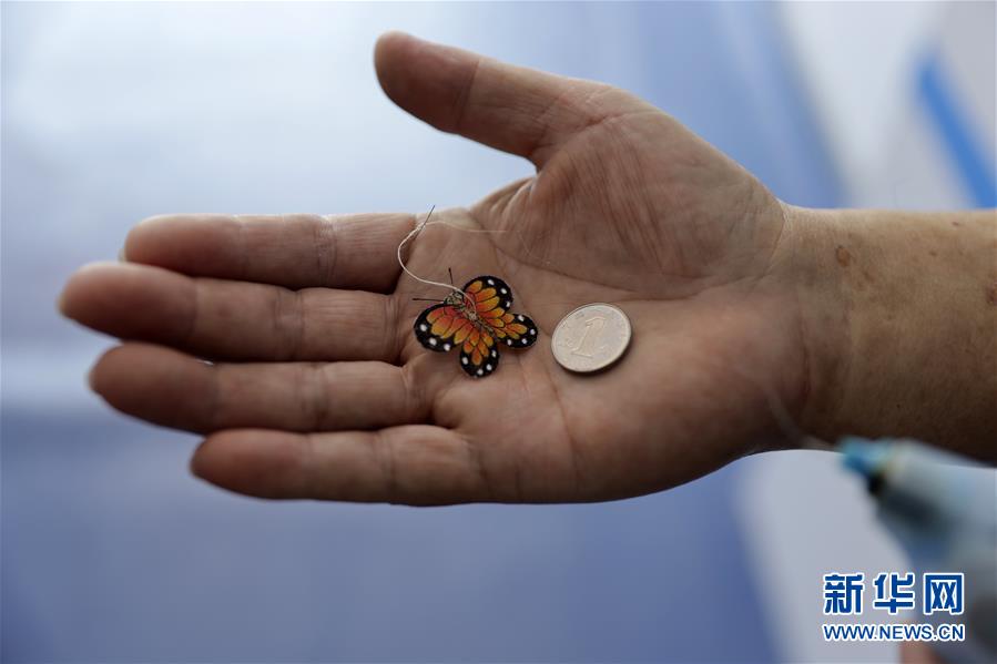 9月3日,北京市风筝协会参展商在2020服贸会文化体育融合展区展示微型风筝。 2020年中国国际服务贸易交易会将于9月4日-9日在北京举行。9月3日,受邀媒体记者来到位于北京奥林匹克公园中轴景观大道的专题展区进行探访。 新华社记者 李木子 摄