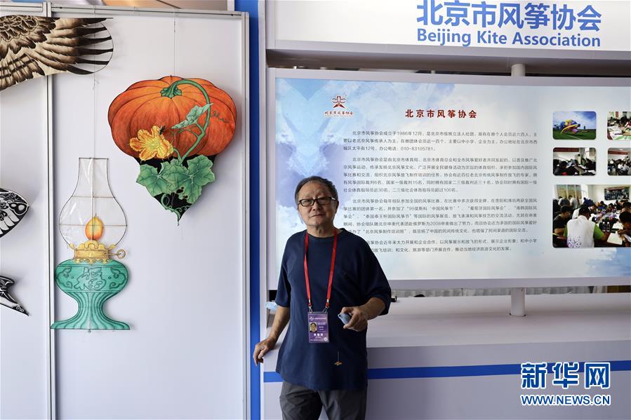 9月3日,北京市风筝协会参展商在2020服贸会文化体育融合展区展示风筝。 2020年中国国际服务贸易交易会将于9月4日-9日在北京举行。9月3日,受邀媒体记者来到位于北京奥林匹克公园中轴景观大道的专题展区进行探访。 新华社记者 李木子 摄