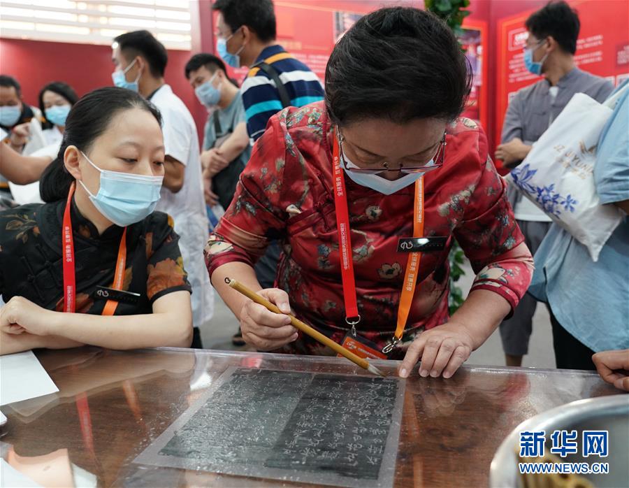 9月8日,文物修复专家吕成英在展示拓片修复技艺。 2020年中国国际服务贸易交易会9月4日至9日在北京举行。在本届服贸会文化服务专题展区,文物修复专家现场展示文物修复技艺,让观众近距离感受文物修复过程。 新华社记者 张晨霖 摄