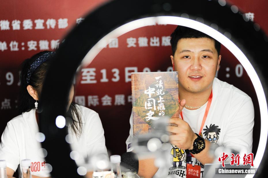 9月10日,主播在黄山书会上网络直播卖书。当日,以“决胜小康 奋斗有我”为主题的2020中国黄山书会开幕式在安徽合肥举行。本届书会为期4天,为落实疫情防控要求,同时满足广大读者的阅读需求,本届书会运用互联网技术,打造“1个主展场+150个实体书店(含城市阅读空间)分展场+1个线上展厅”的线上线下“书香盛宴”。中新社记者 张娅子 摄