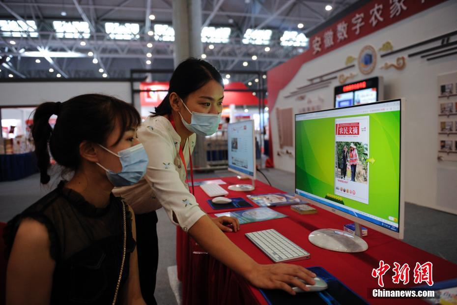 9月10日,市民了解数字农家书屋。当日,以“决胜小康 奋斗有我”为主题的2020中国黄山书会开幕式在安徽合肥举行。本届书会为期4天,为落实疫情防控要求,同时满足广大读者的阅读需求,本届书会运用互联网技术,打造“1个主展场+150个实体书店(含城市阅读空间)分展场+1个线上展厅”的线上线下“书香盛宴”。中新社记者 张娅子 摄