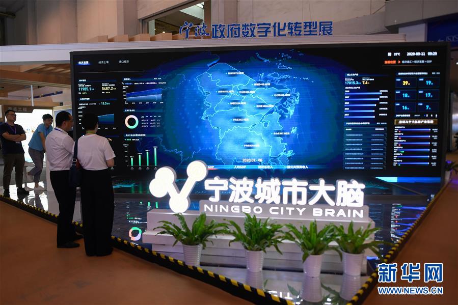 9月11日,观众在智慧城市馆内宁波城市大脑展区参观。新华社记者 黄宗治 摄