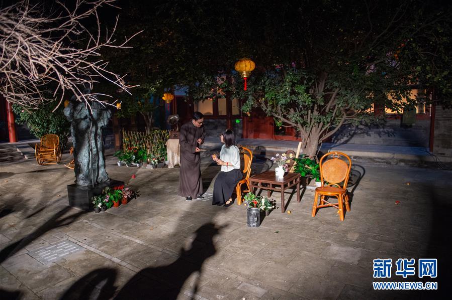 9月11日,实景话剧《邻居们》在位于北京东城区雨儿胡同的齐白石旧居纪念馆内上演。 当日,“大戏东望·2020南锣鼓巷戏剧展演季”在北京市东城区南锣鼓巷及周边街区开幕。本届活动以“戏剧温暖城市”为主题,将戏剧融入街区,增加观众的沉浸式体验。 新华社记者 陈钟昊 摄