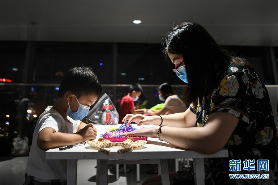 9月11日,在成都博物馆,一名小朋友在大人的帮助下参与织造体验。 当晚,成都博物馆启动“周末儿童博物馆”活动,各种体验活动吸引众多青少年参与。据介绍,该活动将在每周五、六晚间开放。 新华社记者 唐文豪 摄