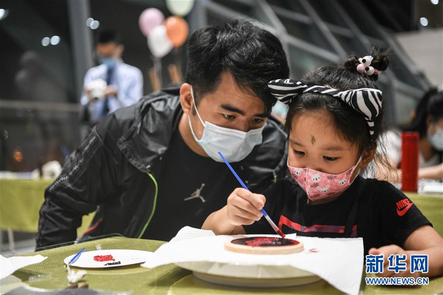 9月11日,一名小朋友在成都博物馆体验成都漆器制作。 当晚,成都博物馆启动“周末儿童博物馆”活动,各种体验活动吸引众多青少年参与。据介绍,该活动将在每周五、六晚间开放。 新华社记者 唐文豪 摄