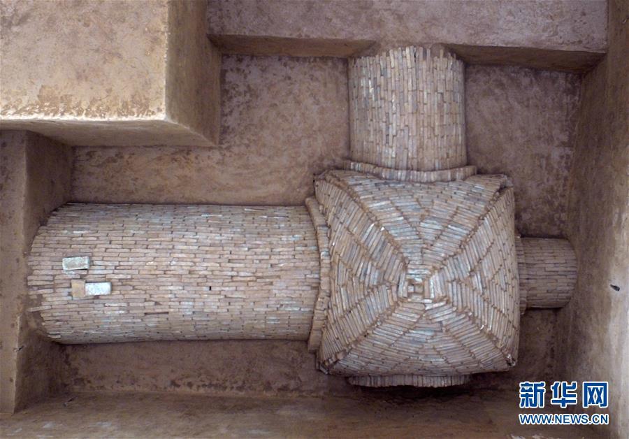 这是陕西省宝鸡市郭家崖墓地的东汉墓葬砖结构(2018年1月2日摄)。 新华社发
