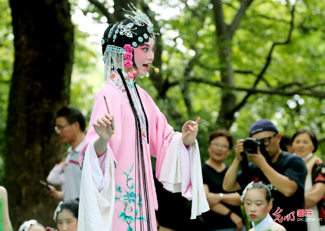 2020年9月12日,参加比赛的选手正在表演昆曲《牡丹亭》片断。当日,江苏省苏州市以"曲艺童心畅游古今"为主题的少儿昆曲比赛在苏州虎丘景区进行。参加比赛的少儿选手们纷纷登台表演昆曲《牡丹亭》等曲目,婉转的行腔、细腻的表演,旨在传承昆曲艺术,感受中华优秀传统文化。(华雪根摄/光明图片)