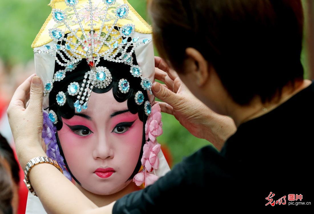 2020年9月12日,参加昆曲比赛的一位选手正在化妆。当日,江苏省苏州市以"曲艺童心畅游古今"为主题的少儿昆曲比赛在苏州虎丘景区进行。参加比赛的少儿选手们纷纷登台表演昆曲《牡丹亭》等曲目,婉转的行腔、细腻的表演,旨在传承昆曲艺术,感受中华优秀传统文化。(华雪根摄/光明图片)