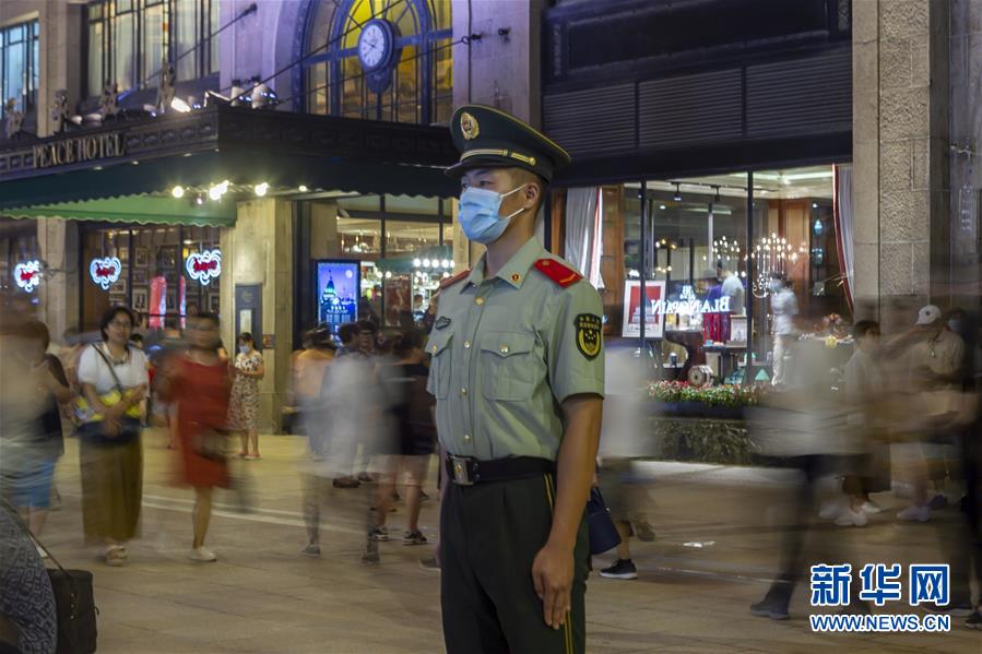 9月12日,武警战士在南京路步行街东拓段执勤。 新华社记者 王翔 摄