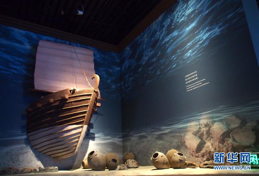 9月14日在上海博物馆拍摄的“黑石号”模型。新华社记者 任珑 摄