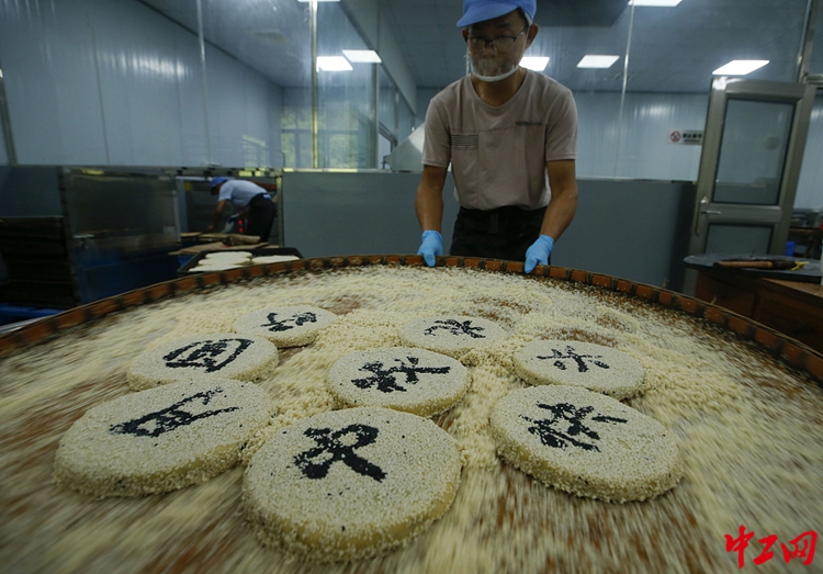 当日,安徽省黄山市祁门县,徽州制饼手艺人经过“配料、和面、包馅、打饼、固形、写字、粘黑芝麻、上白芝麻和烘烤”9道古法手工工序后,制成可食可赏的“徽州月饼”,深受老百姓的喜爱。“过中秋,吃麻饼”是徽州民间的传统习俗,“徽州月饼”又称“徽州麻饼”,皮薄酥脆甜而不腻,是古徽州中秋佳节传统糕点。