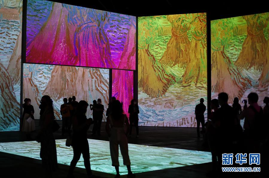 9月17日,在澳大利亚悉尼,媒体记者参观梵高画展。 梵高沉浸式画展9月18日将在澳大利亚悉尼开幕,这场盛会将给悉尼市民和艺术爱好者带来全新的梵高作品观展体验。 新华社记者 白雪飞 摄