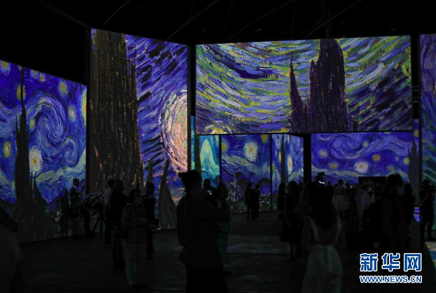 9月17日,在澳大利亚悉尼,媒体记者参观梵高画展。 梵高沉浸式画展9月18日将在澳大利亚悉尼开幕,这场盛会将给悉尼市民和艺术爱好者带来全新的梵高作品观展体验。 新华社记者 白雪飞 摄