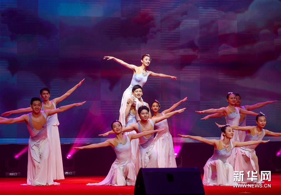 9月17日,中国残疾人艺术团的舞蹈演员在宁夏固原市西吉县体育馆表演《白色的鸟》。新华社记者 杨植森 摄