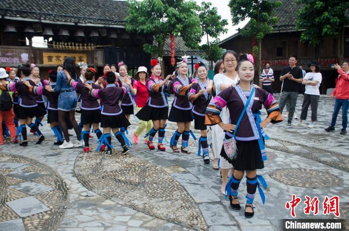 9月18日,广西柳州市融水苗族自治县梦呜苗寨景区的民俗文化吸引了众多游客。据悉,梦呜苗寨是融水县围绕旅游与乡村建设、异地扶贫搬迁、精准扶贫相结合的工程。梦呜苗寨里的14户贫困户是从150多公里外的深山里搬迁而来,景区采取“旅游+扶贫”的模式,让他们参与景区的演出,展示他们的民俗文化,以及承担景区的相关管理工作等,他们也因此既是农民,也是景区管理员和田园护理工,同时还是演员,生活多姿多彩,活出了新花样,也有了稳定的收入。