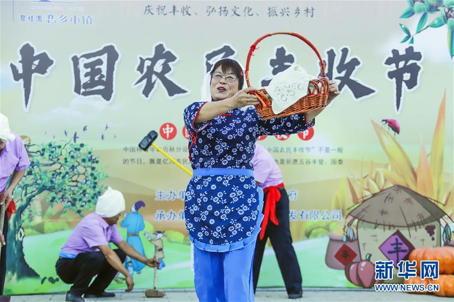 9月20日,河北省遵化市兴旺寨乡农民在庆祝活动上表演文艺节目。 9月22日,我国将迎来第三个中国农民丰收节,各地开展多彩活动,喜迎丰收。 新华社发(刘满仓 摄)
