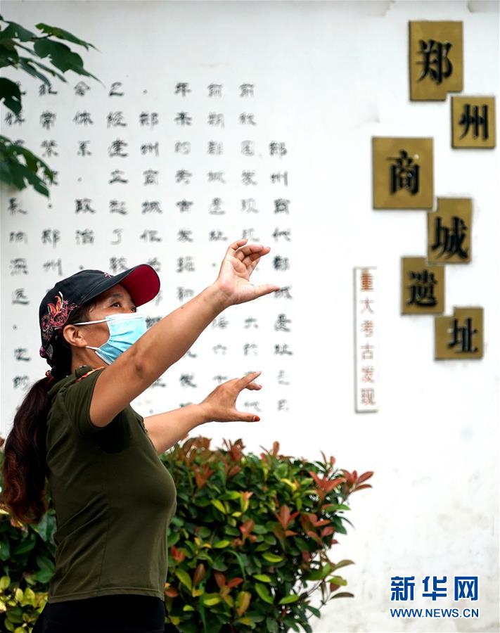 市民在位于郑州老城区中心的商都遗址公园内跳舞(8月25日摄)。 新华社记者 李安 摄