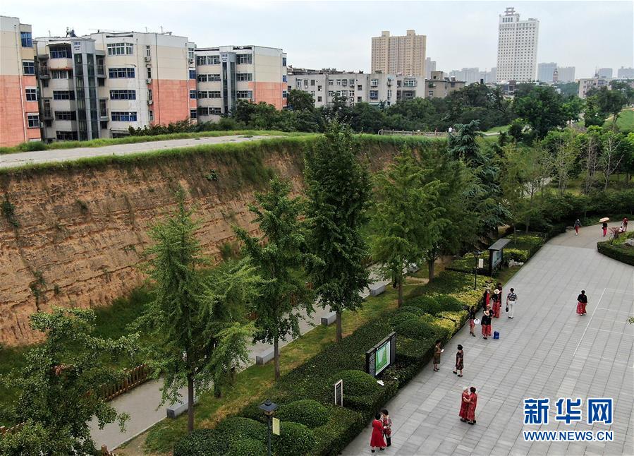 市民在位于郑州老城区中心的商都遗址公园内休闲(8月25日摄,无人机照片)。 新华社记者 李安 摄