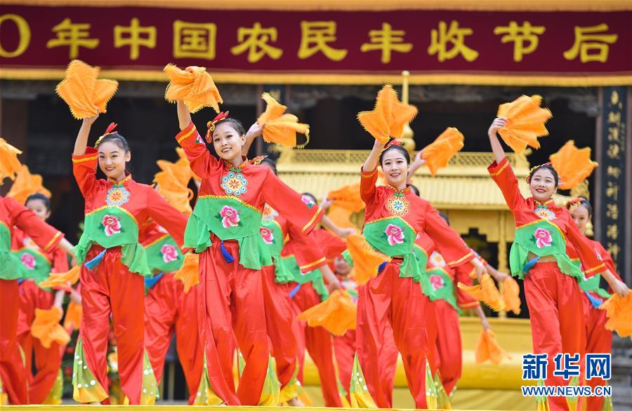 9月22日,在山西省运城市万荣县后土祠,群众在进行歌舞表演。 当日,第三个中国农民丰收节主场活动在山西省运城市万荣县举行。 新华社发(柴婷 摄)