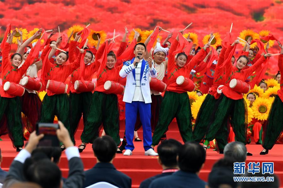 9月22日在第三个中国农民丰收节主场活动上拍摄的文艺表演。 当日,第三个中国农民丰收节主场活动在山西省运城市万荣县举行。 新华社记者 曹阳 摄
