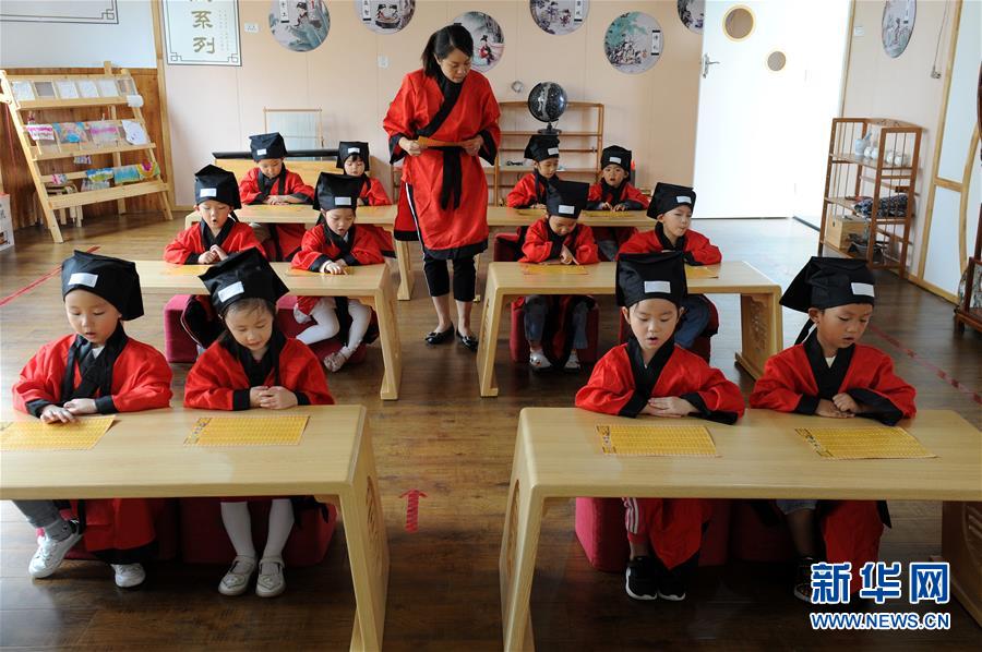 9月24日,湖北襄阳高新区祥云社区小朋友接受传统文化教育,诵读国学经典。 近年来,湖北省襄阳市高新区积极引领全民阅读新风尚,通过打造“少儿阅读示范点”、创办农家书屋、开辟线上“高新朗读者”栏目、设立“全民阅读服务点”等方式,营造全民阅读的良好氛围。 新华社发(刘玉和 摄)