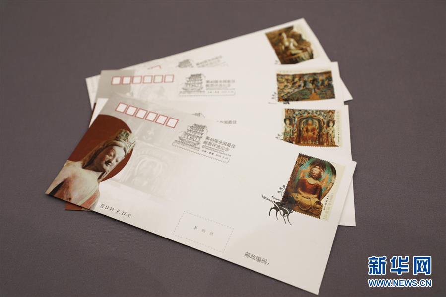这是9月26日在甘肃省敦煌市拍摄的贴有《莫高窟》特种邮票的首日封。新华社记者 李杰 摄