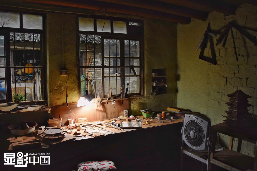 杨纪岳对木工手艺的喜爱是发自内心的,在制作木塔的一年半时间里,他独守在工场间,攻克种种技术难题。