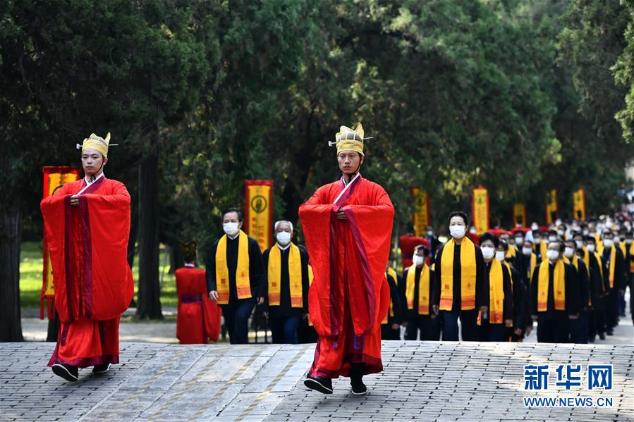 9月28日,参加庚子年祭孔大典的嘉宾步入曲阜孔庙。新华社记者 郭绪雷摄