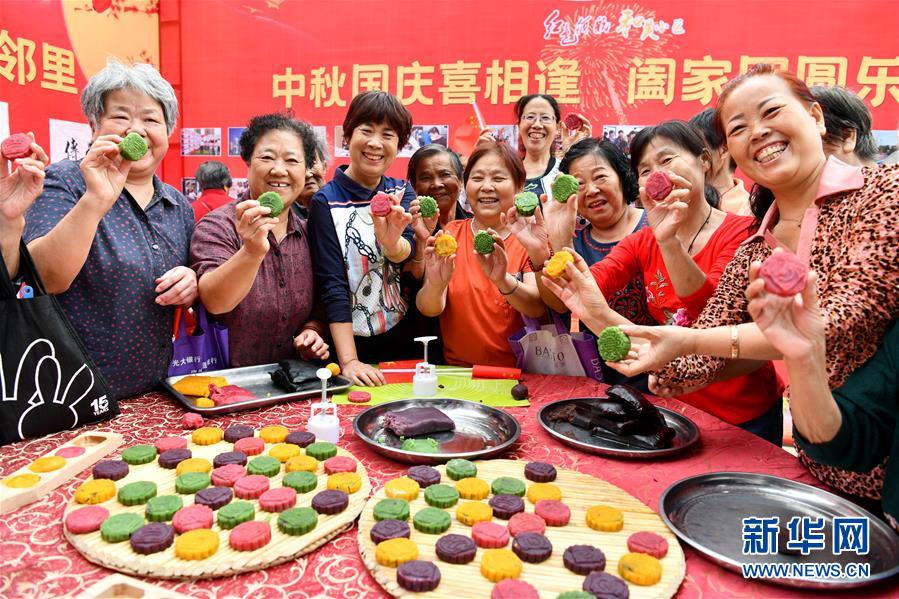 当日,安徽省合肥市包河区金寨南路社区举办“邻里节 迎中秋”活动,社区居民齐聚一堂,动手制作多彩月饼,迎接中秋节的到来。