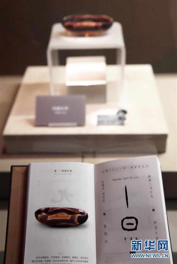 这是9月30日在陕西历史博物馆“大唐遗宝——何家村窖藏出土文物展”拍摄的《2021陕博日历·花舞大唐》。 当日,《2021陕博日历·花舞大唐》在西安正式发行。日历集中展示陕西历史博物馆“大唐遗宝——何家村窖藏出土文物展”最具代表性的300余件精品文物图片。 新华社记者 李一博 摄