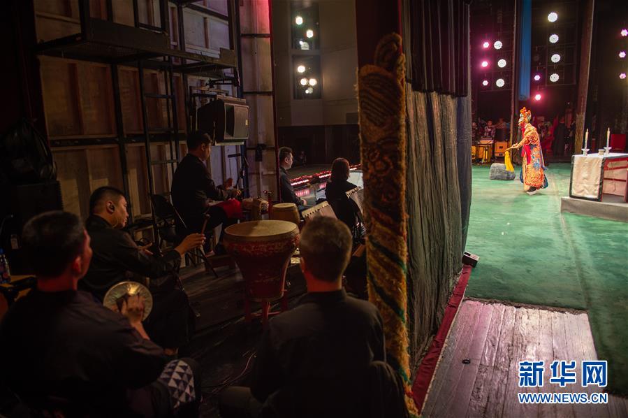 9月29日,京剧院乐队在演奏。 9月29日,北京长安大戏院举办“纪念张君秋先生诞辰100周年”专场演出。 夜幕降临,涂粉、画油彩、穿戏服、戴头饰、吊嗓子……来自北京京剧院的演员们在后台忙碌起来。晚7点半,舞台大幕徐徐拉开,张派唱腔响彻戏院上空,引来票友们阵阵喝彩。 历时两个小时的演出,身居幕后的音乐、剧装、容妆、盔箱等工作人员与台前的演员密切配合,共同打造了一场精彩纷呈的京剧之夜。 新华社记者 陈钟昊 摄