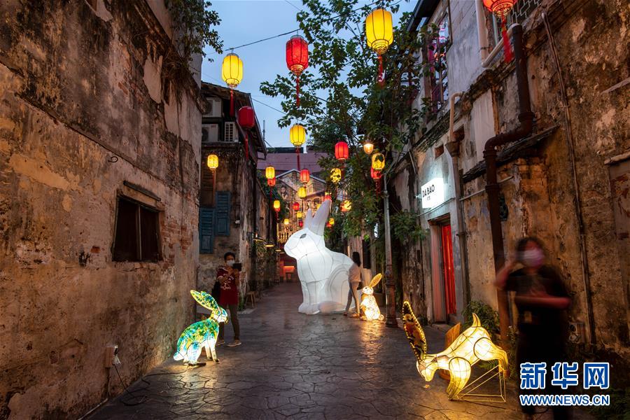 玉兔花灯映照吉隆坡月夜