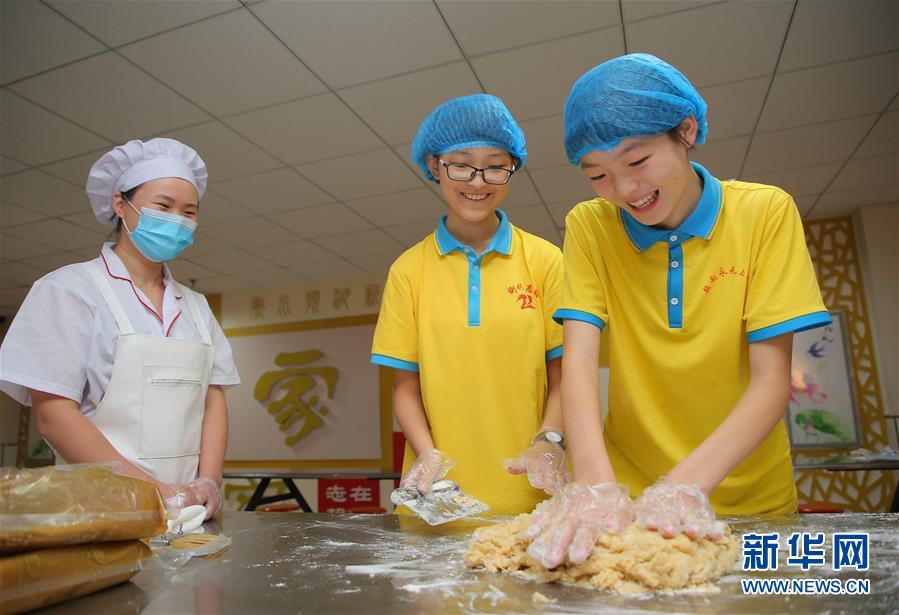 9月30日, 衡水滨湖新区志臻中学学生在体验月饼制作。 当日,河北省衡水滨湖新区志臻中学组织开展“学做月饼 喜迎中秋”民俗文化体验活动。学生们在老师的指导下学习手工制作月饼,喜迎中秋佳节。 新华社记者 朱旭东 摄
