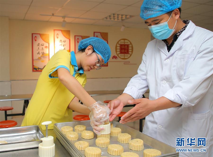 9月30日, 衡水滨湖新区志臻中学学生在体验月饼制作。 当日,河北省衡水滨湖新区志臻中学组织开展“学做月饼 喜迎中秋”民俗文化体验活动。学生们在老师的指导下学习手工制作月饼,喜迎中秋佳节。 新华社记者 朱旭东 摄