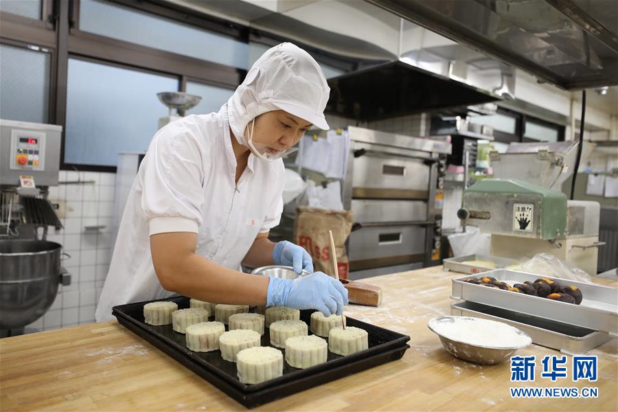 9月30日,在日本横滨,菜香食品公司的工作人员在制作月饼。 中秋节到来之际,日本横滨的菜香食品公司制作了许多蛋黄月饼,以蛋黄象征圆月,迎接中秋佳节。 新华社记者 杜潇逸 摄