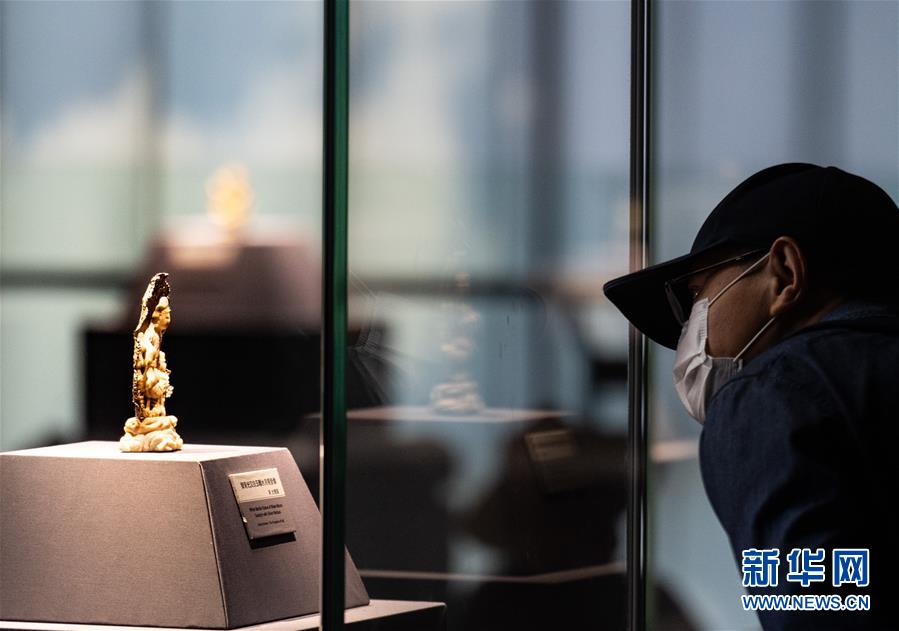 10月2日,一名参观者在云南省博物馆内欣赏展品。 当日是国庆长假第二天,许多市民和游客来到云南省博物馆参观,在假期中丰富知识。 新华社发(王冠森 摄)