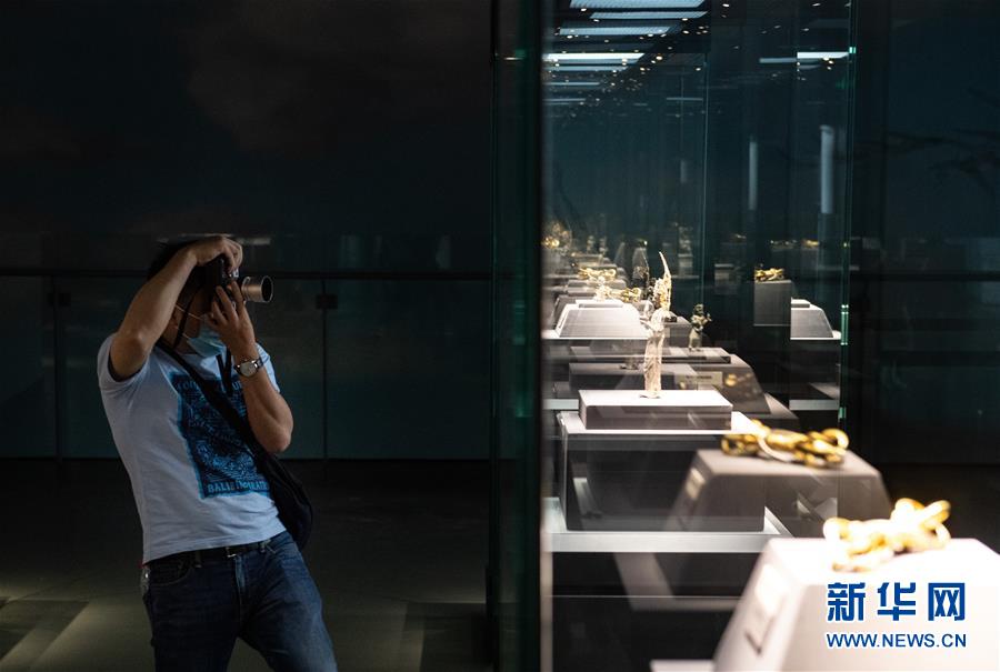 10月2日,一名参观者在云南省博物馆内拍摄展品。 当日是国庆长假第二天,许多市民和游客来到云南省博物馆参观,在假期中丰富知识。 新华社发(王冠森 摄)