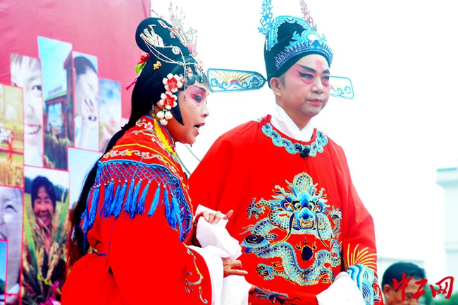 2020年10月6日,江西省上饶市鄱阳县石门街镇农民正在开心观看当地农民自己演绎的古装赣剧《打金枝》。
