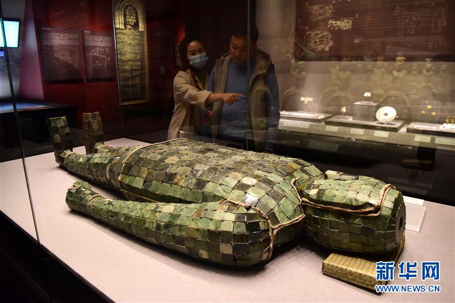 10月13日,游客在河南博物院展厅内观看“金缕玉衣”。 近日,改造升级后的河南博物院重新对外开放。河南博物院共设16个展厅,展出精品文物5000余件套,历史文化艺术价值极高,部分藏品被誉为国之重器。 新华社记者 朱祥 摄