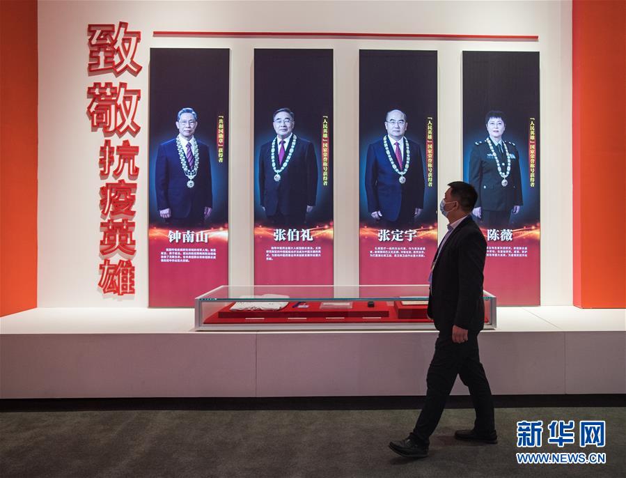 10月15日,一名参观者在观看抗击新冠肺炎疫情专题展览。新华社记者 肖艺九 摄