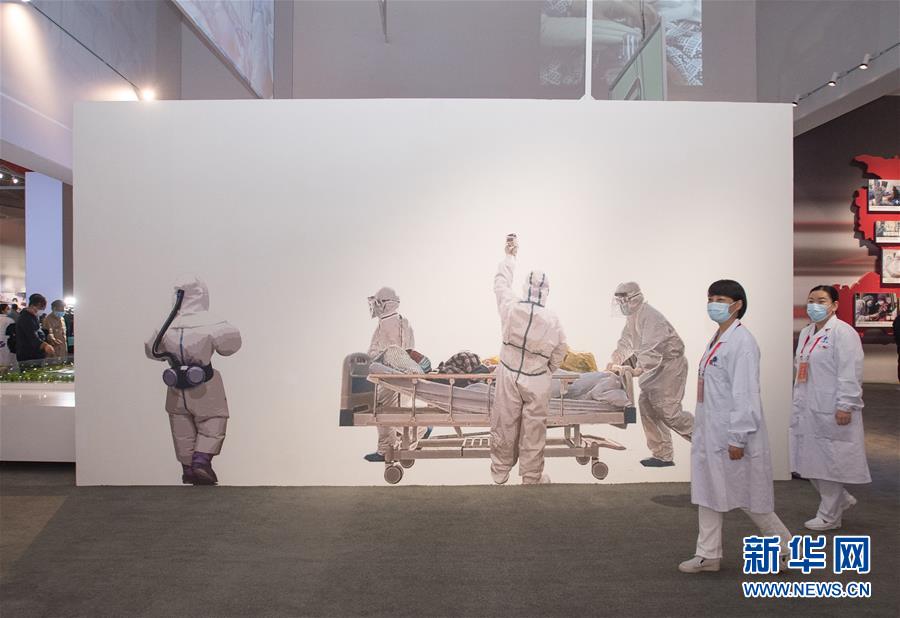 10月15日,医护人员代表在抗击新冠肺炎疫情专题展览上参观。新华社记者 肖艺九 摄