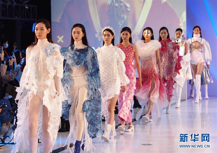当日,新锐东华2020——大学生创意时装秀在上海国际传媒港上演。本次时装秀汇集了11个系列、43套服装,全部选自东华大学的500套学生作品。学生设计师们的作品大多从日常生活出发,大胆改造现有面料及印花工艺。