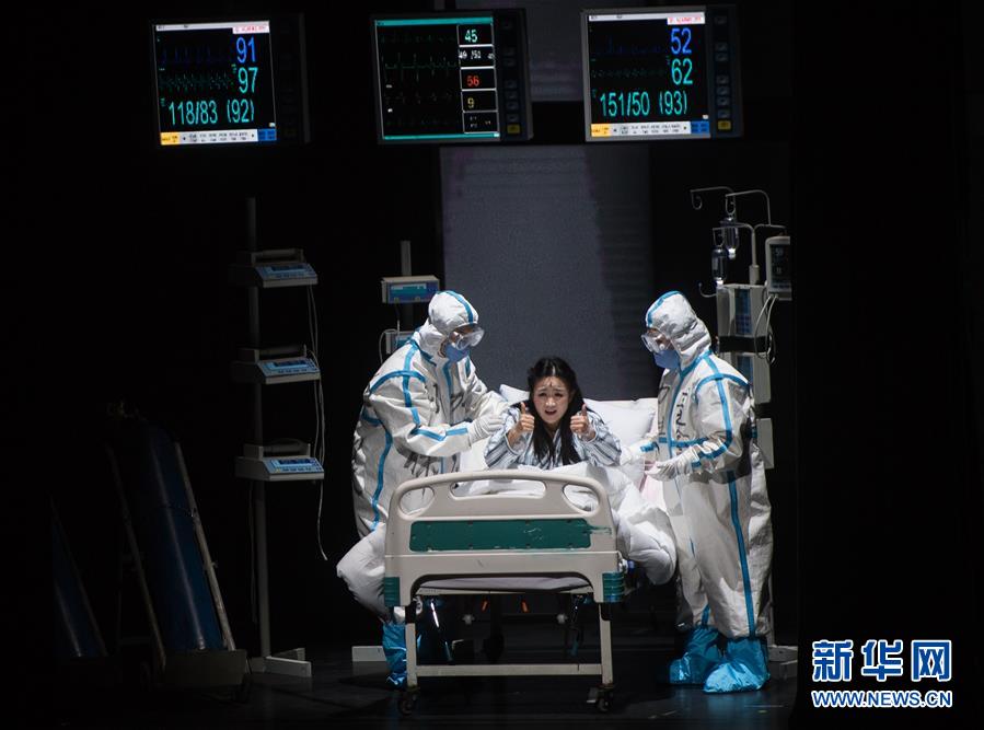 10月17日,演员在表演歌剧《天使日记》。 当日,大型民族歌剧《天使日记》在武汉琴台大剧院首演。该剧通过讲述白衣天使的战“疫”故事,弘扬“生命至上、举国同心、舍生忘死、尊重科学、命运与共”的抗疫精神。 歌剧《天使日记》聚焦抗疫最前线的普通护士、医生和他们的亲人,塑造了以“兰之念”“方医生”“黄鹤”等为代表的曾为湖北抗疫拼搏奉献的医护人员形象,讴歌了堪当重任的“90后”“00后”医护群体,展示白衣天使向死而生、逆行出征的感人事迹。 新华社记者 肖艺九 摄
