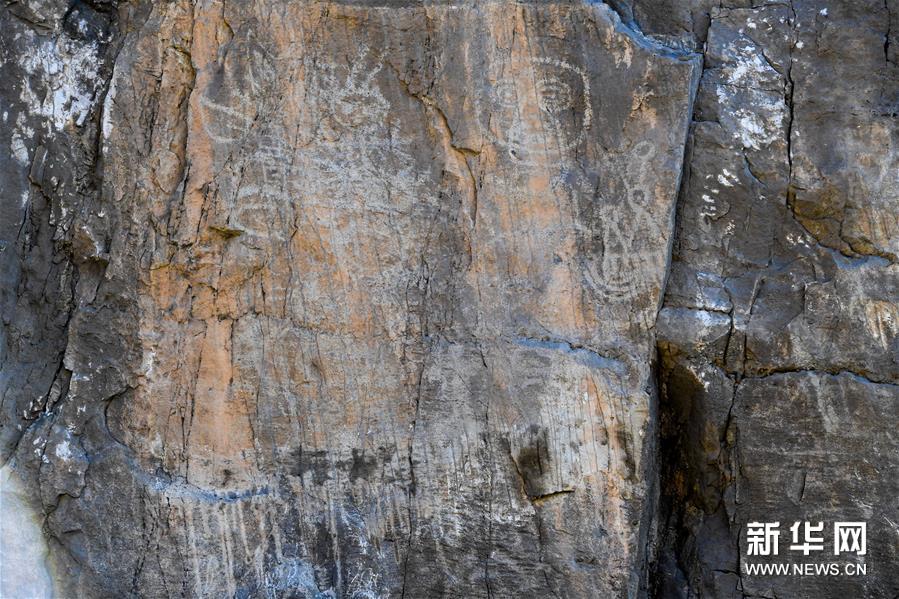 这是10月17日拍摄的桌子山岩画群中的摩尔沟岩画局部。新华社记者 彭源 摄