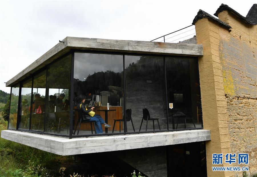 这是10月22日拍摄的先锋厦地水田书店的玻璃咖啡厅。 福建省宁德市屏南县厦地村有座被水田环绕的“网红”书店——先锋厦地水田书店。书店利用荒废古民居进行翻修改造,占地两百多平方米,内部搭出现代的简约空间。书店里陈列有精选的人文社科类书籍,并设置了乡土文化专区,摆放有与屏南历史地理相关的图书供读者阅读。 新华社记者魏培全摄
