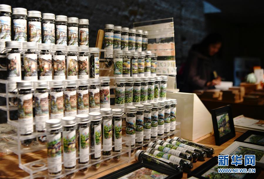 这是先锋厦地水田书店展示的具有闽东地方特色的文创产品(10月22日摄)。 福建省宁德市屏南县厦地村有座被水田环绕的“网红”书店——先锋厦地水田书店。书店利用荒废古民居进行翻修改造,占地两百多平方米,内部搭出现代的简约空间。书店里陈列有精选的人文社科类书籍,并设置了乡土文化专区,摆放有与屏南历史地理相关的图书供读者阅读。 新华社记者魏培全摄