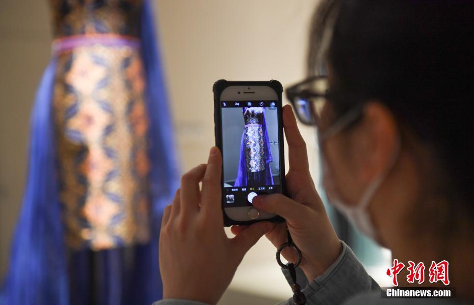 10月22日,参观者观看展出的旗袍作品。近日,“如诗:2020全球旗袍邀请展”在位于浙江杭州的中国丝绸博物馆举行,展览以“诗歌”为主题,共邀请全球多个国家及地区的设计师制作四十余件旗袍作品。中新社记者 王刚 摄